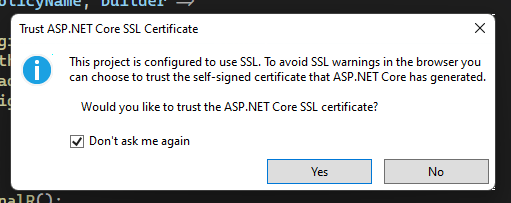Access to fetch at ‘https://localhost:7199/signalrdemohub/negotiate?negotiateVersion=1’ from origin ‘http://localhost:4200’ has been blocked by CORS policy: Response to preflight request doesn’t pass access control check: No ‘Access-Control-Allow-Origin’ header is present on the requested resource. If an opaque response serves your needs, set the request’s mode to ‘no-cors’ to fetch the resource with CORS disabled.
