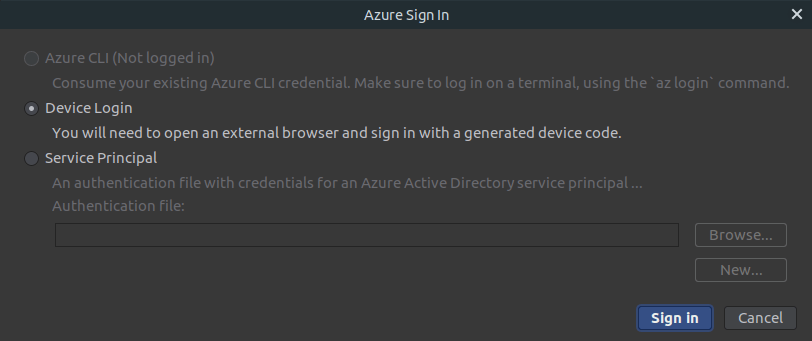 Once authenticated, you can then select your desired Azure subscription back in Rider: