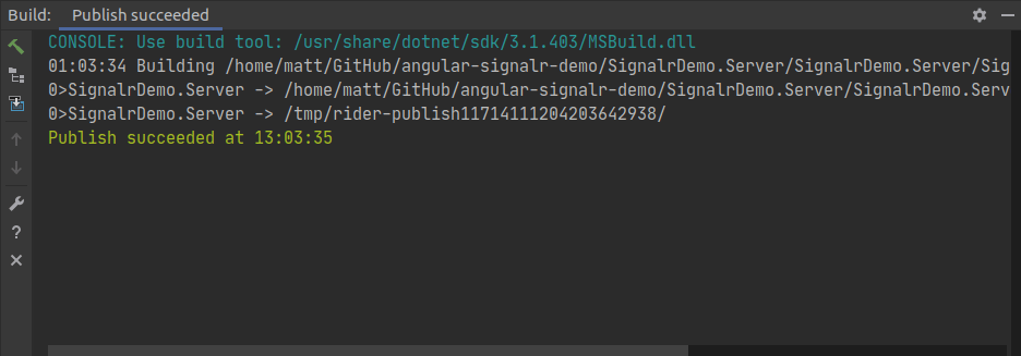 For my simple Angular SignalR demo project, I will just build the “SignalrDemo.Server” project, and then open a browser with the app url: