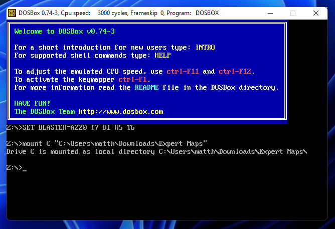 Once launched, Expert Maps runs perfectly under DoxBOX and Windows 11!